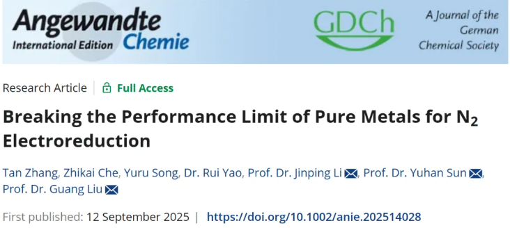 氢气制储研究组Angew:突破纯金属的电催化氮还原性能约束