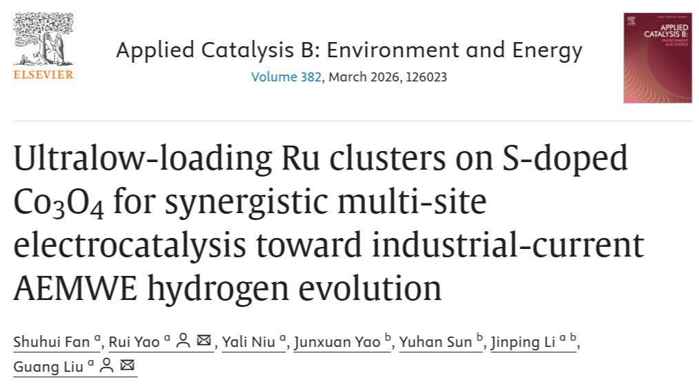 氢气制储研究组ACB: 多位点协同作用,Ru/S-Co₃O₄实现AE...