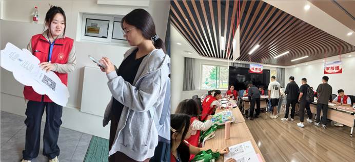 报到当天,过控楼一层的学院报到点布置得整洁温馨。清晰的流程指示牌、分类整理的报到资料、佩戴统一标识的师生志愿者,共同构成校园里一道充满活力的风景线。志愿者们主动上前、分工协作,为新生提供从身份核验到宿舍指引的“一站式”服务,用真诚的笑容、细致的讲解化解新生初入校园的陌生感,让“精准服务、暖心迎新”的理念落到实处。