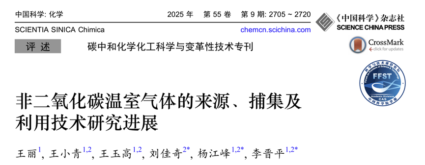 近日,杨江峰教授课题组在《中国科学:化学》(Scientia Sinica Chimica,2025年第55卷第9期)发表综述论文《非二氧化碳温室气体的来源、捕集及利用技术研究进展》(Research progress on sources, capture, and utilization of non-CO2 greenhouse gases。该论文系统总结了非CO2温室气体的排放特征、捕集与利用技术的最新研究进展,为我国实现“双碳”目标提供了重要的科学参考。该论文的第一署名单位为太原理工大学,第一作者为王丽博士,论文通讯作者为李晋平教授、杨江峰教授和刘佳奇博士(怀柔实验室山西研究院)。