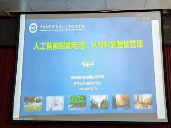 毛治宇副研究员作了题为 “人工智能赋能电池:从材料到智能管理”的报告。他聚焦 AI 技术在电池全链条的应用,从电池材料的智能设计与筛选入手,阐述了 AI 对高性能电极材料、电解质开发进程的加速作用。此外,还深入探讨了 AI 在电池制造过程优化、状态精确估计、故障诊断与预警以及电池管理系统智能控制等方面的核心作用,并结合自身实践经验,展示了 AI 在提升电池安全性、寿命和性能上的成效。