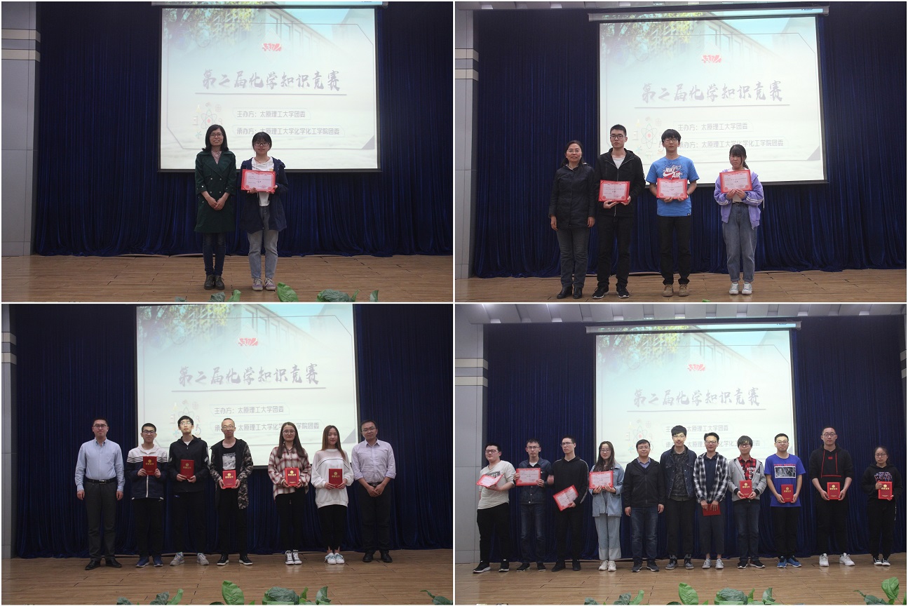 由校团委主办,化学化工学院团委承办的太原理工大学第二届“华为杯”化学知识竞赛于4月14日下午在明向和迎西同时拉开初赛帷幕,最终于4月18日晚上在迎西思贤楼3层报告厅进行复赛并圆满落幕。复赛邀请到了校团委科技实践部部长安晓燕老师、化学化工学院化工系申迎华教授、化学化工学院化学系陈佳琪老师、陈良老师出席并担任评委。学院团委副书记王建云,学工办辅导员兰天昊参加了此次活动。