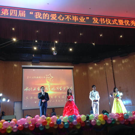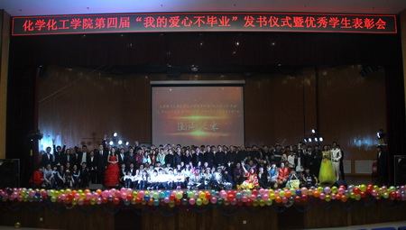 2015年12月9日,我院在明向校区学生活动中心举办第四届我的爱心不毕业之“承化工书生意,恰同学少年情”发书仪式暨优秀学生表彰会。校学生处处长李海星、校团委副书记张勇、学院全体党政领导及部分辅导员老师出席本次活动。